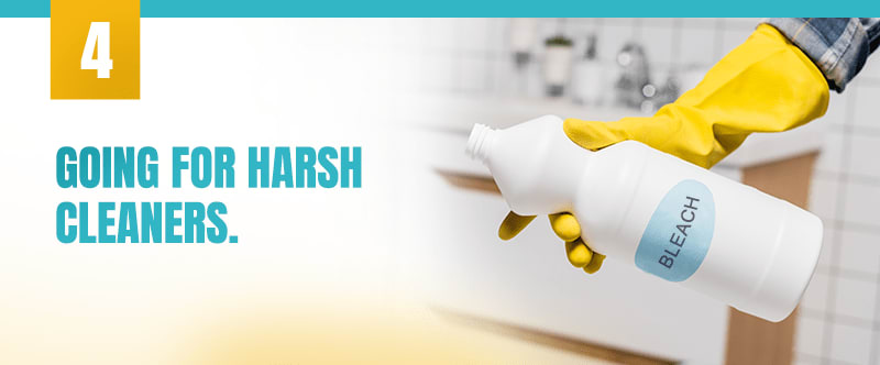 Just like how using too much cleaner is a common mistake, using a harsh cleaner to do the job can also be a bad habit that can do more harm than good. Household staples, such as chlorine bleach, may be a good disinfectant but is too harsh and can cause more damage than just removing dirt and grime. It can be hazardous to your family and pets, and could even strip away your home's surfaces, furnishings and finishes.