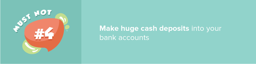You must discuss with your loan officer the proper way to document your transactions. If you are expecting a large sum of money or keeping a significant amount of cash on hand for emergencies, be prepared to show strong proof of where the money comes from. Also, save yourself from trouble by always keeping copies of deposits so you’ll have proof when you need it.