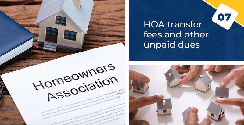 If you're living in a neighborhood that is governed by a homeowners association (HOA), there may be HOA transfer fees to pay on top of all other closing costs mentioned above. These are standard fees that may occur when a property is transferred from one owner to another. Transfer fees are meant to cover the costs associated with preparing documents, handing out HOA’s rules to the new owner, dealing with property inspection records, changing names in the homeowner databases, changing security codes, creating new security cards, and other administrative costs.
